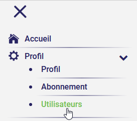 Lorsque vous vous inscrivez dans l'AssisTemps, vous êtes seul dans votre groupe. Pour ajouter des membres à votre groupe, allez dans le Menu - Profil - Utilisateurs :