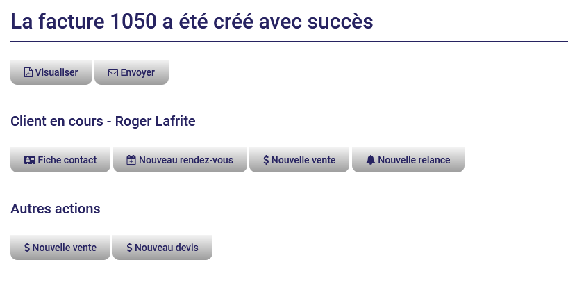 Vous avez vu dans cet article comment créer vos factures dans l'AssisTemps. Une fois que vous avez créé votre facture, vous arrivez à cette fenêtre :