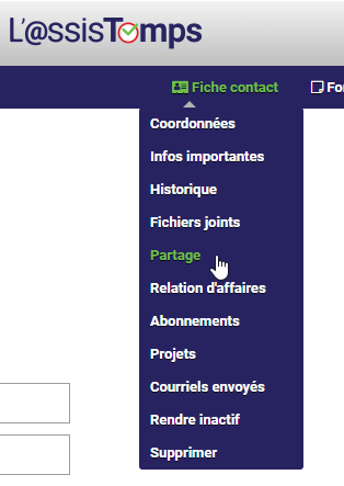 Si cette option est sélectionnée, vous aurez accées au menu Partage qui se trouve dans le menu Fiche contact.