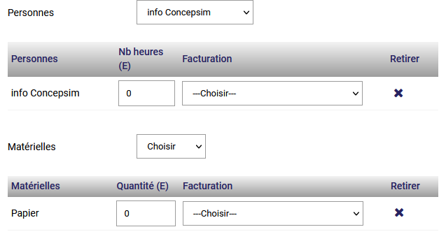 Vous pouvez choisir d'ajouter une personne ou d'ajouter du matériel (boutons en haut).