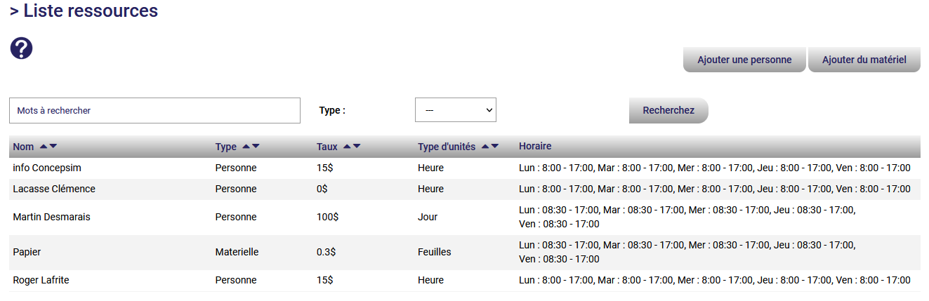 Tout d'abord, ajoutez vos ressources dans l'AssisTemps dans les configurations.  Par la suite, vous pourrez les intégrer à vos projets.