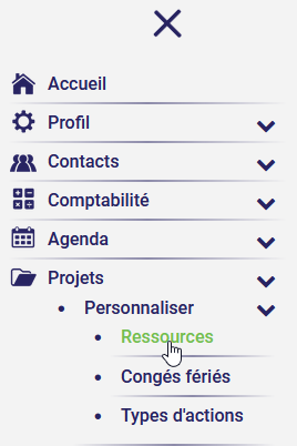 Dans le menu, cliquer sur Gestion de projets - Personnaliser - Ressources :