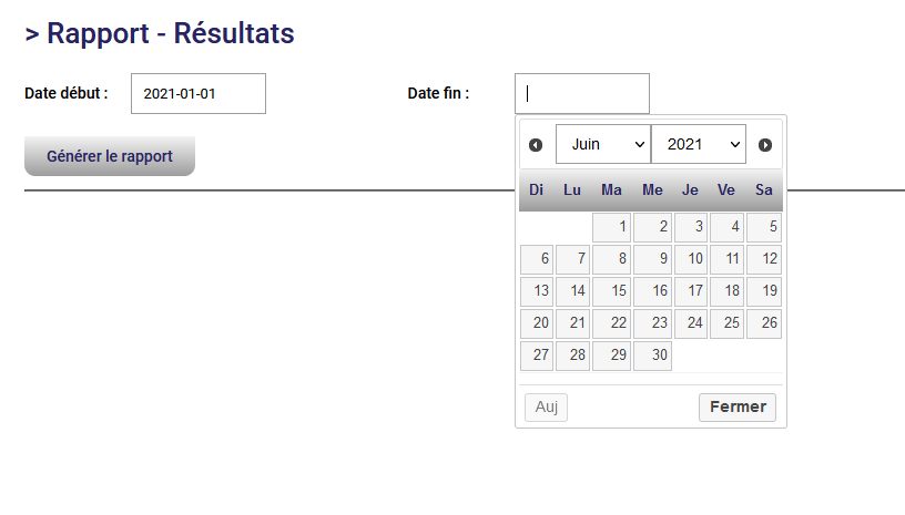 Tous les rapports ont été développé de la même façon afin de faciliter votre travail. Il suffit de sélectionner la date ou la période et de cliquer sur Générer le rapport :