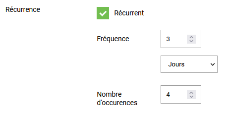 Finalement, il y a la récurrence. Si vous cochez la case, de nouveaux champs apparaitront comme ceci :