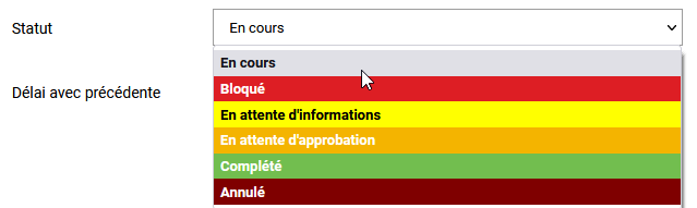 Choisissez le statut qui convient le mieux à votre tâche (une tâche peut avoir le statut Bloqué si vous êtes en attente d'une autre tâche pour commencer celle-ci, par exemple).