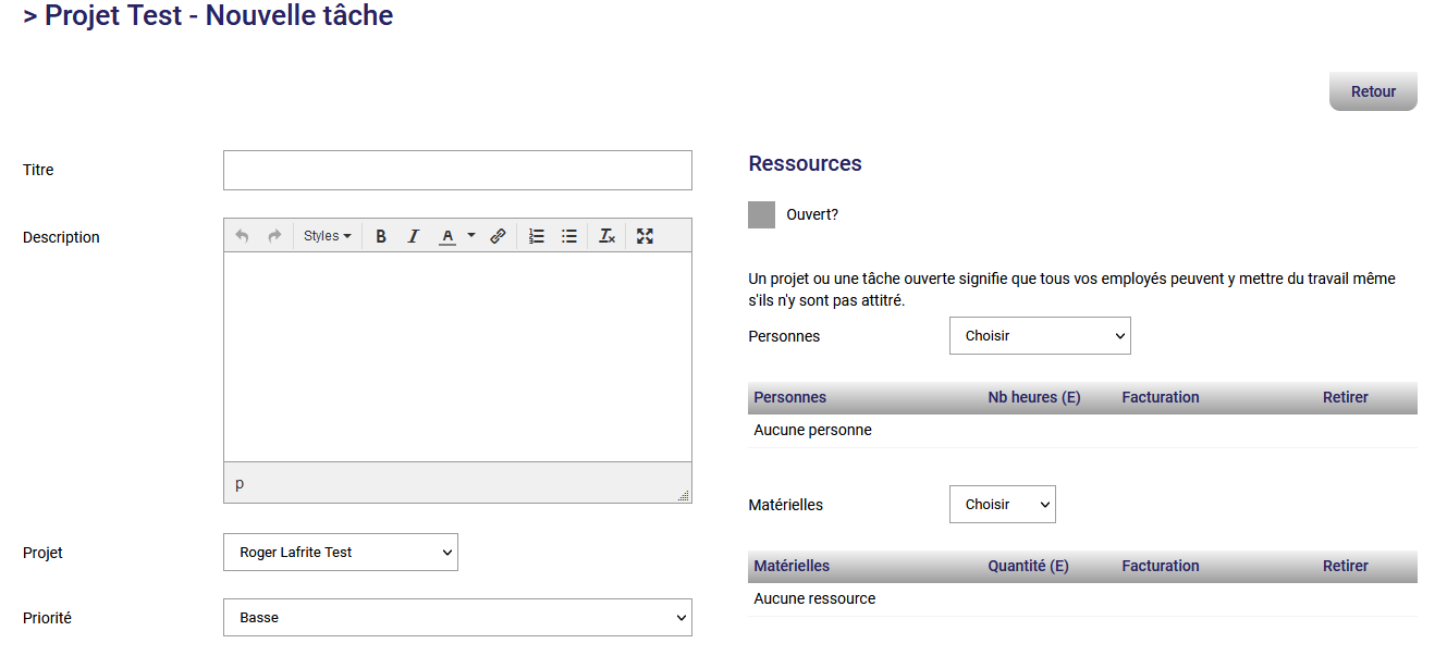 Il ne vous reste qu'à y intégrer vos ressources, cliquer sur Sauvegarder et le tour est joué! Vous avez créé une tâche! Répétez aussi souvent que souhaité!