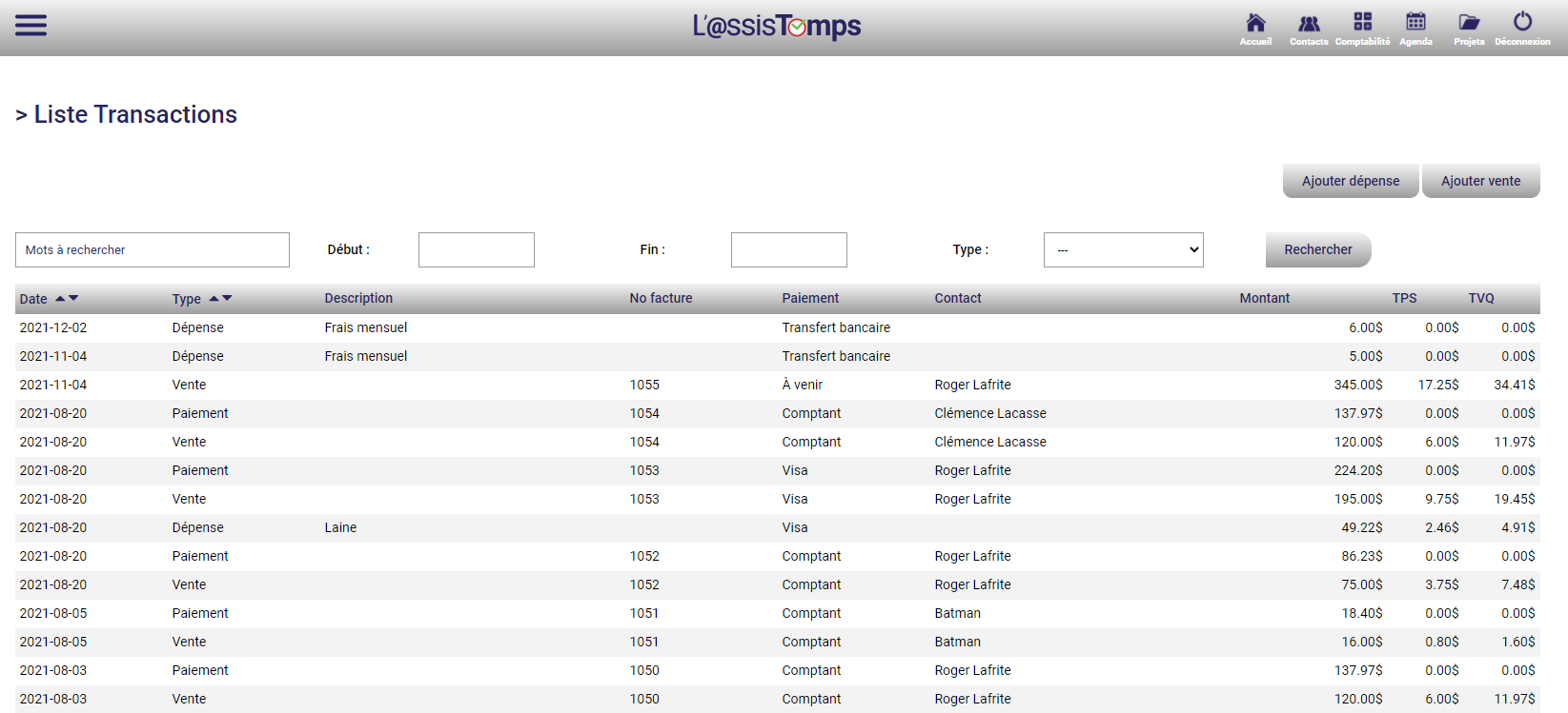 Le module de comptabilité vous permet de créer rapidements vos factures. Il vous permet également de faire votre tenue de livre et de générer vos rapports en quelques clics!