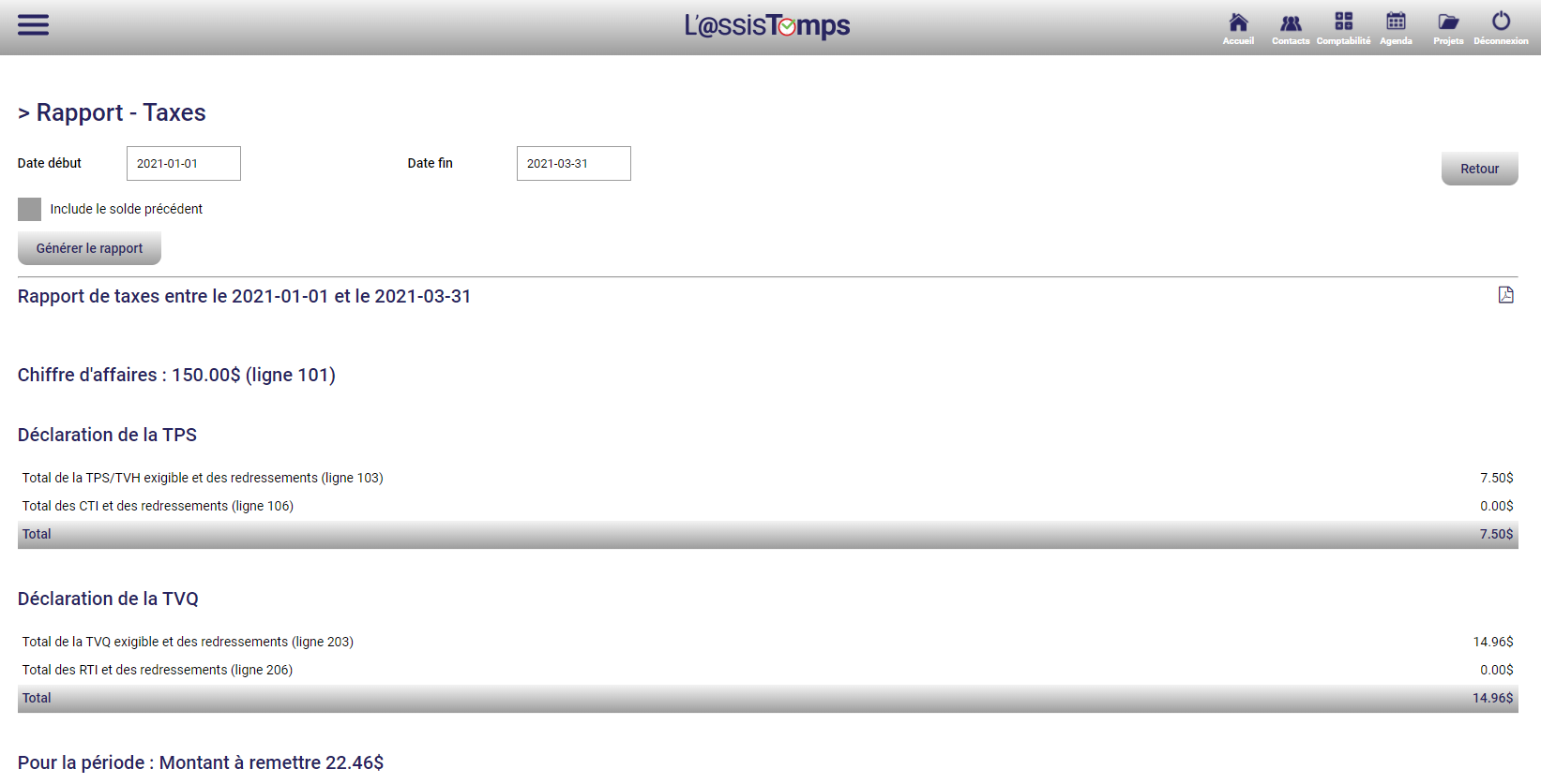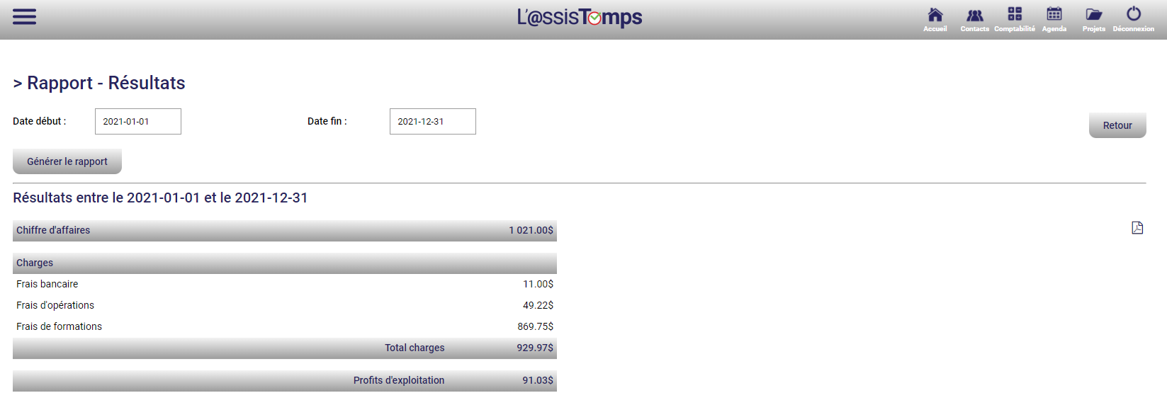 Générez vos rapports en quelques clics en ne sélectionnant que la date de début et la date de fin du rapport.