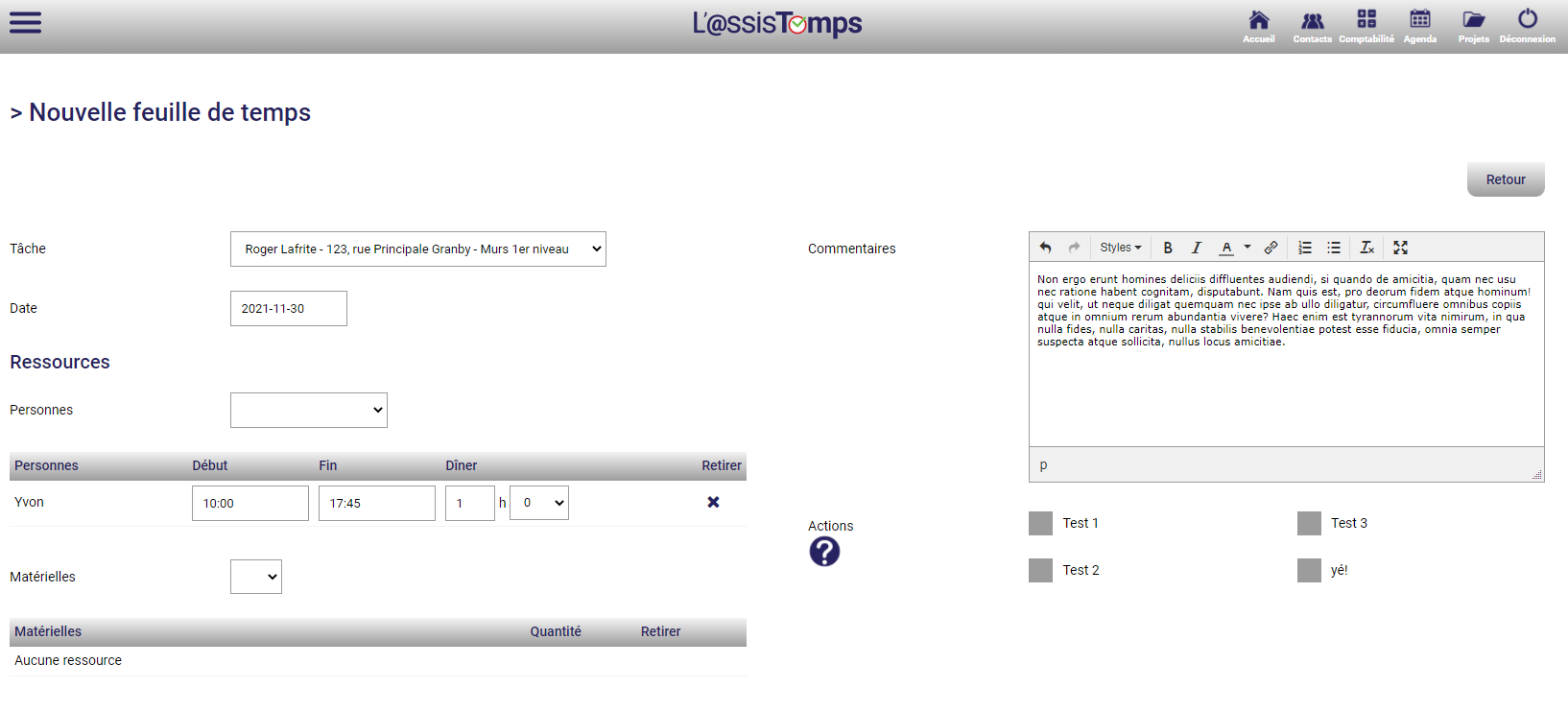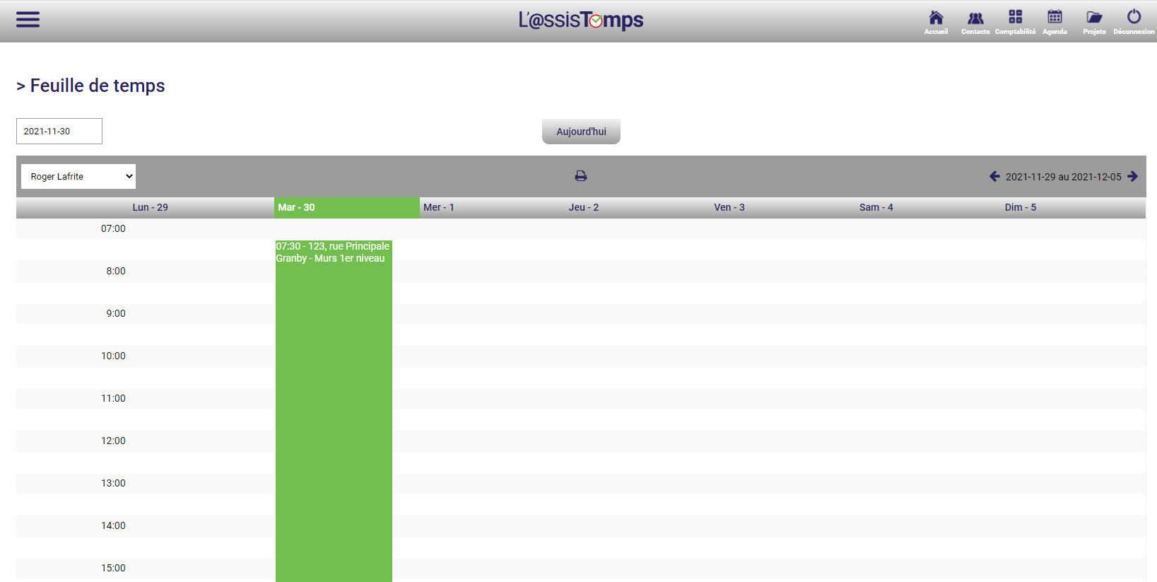 Feuilles de temps