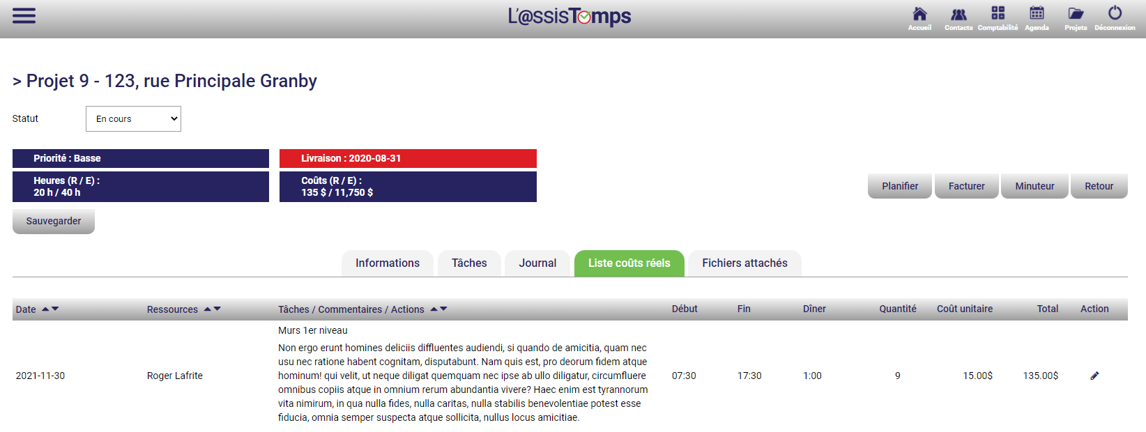 Inscrivez vos heures et celles de vos employés dans vos projets.